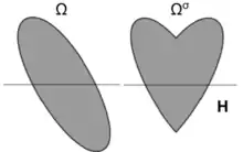Let be a domain and be a hyperplane through the origin. Denote the reflection across that plane to the positive halfspace as or just when it is clear from the context. Also, the reflected across hyperplane H is defined as . Then, the polarized is denoted as and defined as follows