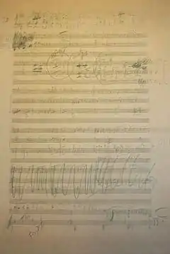 The symphony was written in a small house in Klin and completed by August 1893. Tchaikovsky left Klin on 19 October for the first performance in Saint Petersburg, arriving "in excellent spirits".[10] However, the composer began to feel apprehension over his symphony, when, at rehearsals, the orchestra players did not exhibit any great admiration for the new work.[10] Nevertheless, the premiere was met with great appreciation. Tchaikovsky's brother Modest wrote, "There was applause and the composer was recalled, but with more enthusiasm than on previous occasions. There was not the mighty, overpowering impression made by the work when it was conducted by Eduard Nápravník, on November 18, 1893, and later, wherever it was played."[11]