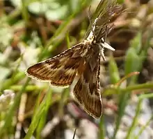 Synaphe moldavica is a species of moth of the family Pyralidae described by Eugenius Johann Christoph Esper in 1794. It is found in Portugal, Spain, Italy, Austria, Slovakia, Hungary, Croatia, Bosnia and Herzegovina, Romania, Bulgaria, North Macedonia, Albania, Greece, Moldova, Ukraine, Russia, Turkey[2] and Iran.