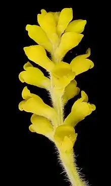 The decumbent to ascending shrub blooms between September and October producing yellow flowers.