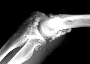 | X-ray of an elbow affected by synovial chondromatosis | |