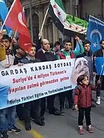 Since the beginning of the Syrian civil war in 2011, large numbers of Syrian Turkmen have been displaced from their homes and many have been killed due to attacks by President Bashar al-Assad's government, as well as the terrorist attacks carried out by "Islamic State of Iraq and the Levant" (ISIL). Whilst Turkmen villages in Hama, Homs, and Latakia have been destroyed by the Syrian government, Turkmen villages in Aleppo were occupied by ISIL.[40]