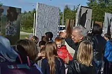 The objective is also cultural. The movement aims to bring a new look on Syria by focusing on its cultural diversity and richness, beyond ubiquitous images of despair. According to Leila Shahid for La Marseilleise, Syria is a great cultural nation, a pluricultural leader of artistic creation.[13] Journalist Alain Laurens commented that the Syrian cultural caravan's involvement makes the public forget during the performance about all the bombings in Aleppo and Damascus and make room for a humane and fraternal communion.[13] It is a way of showing that the Syrian cultural scene and its artists is alive and thriving. Finally, the road trip allows the Cultural Caravan to make art and culture come to the people, therefore going upstream of artistic and cultural centralisation. Most of the time, the exhibition is set up outside, making it accessible to a greater number.