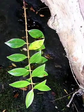 Syzygium fullagarii, commonly known as the scalybark, is a relatively large tree in the Myrtle family. It is found only on Lord Howe Island.[1] It grows to 20 metres (66 feet) tall, up to an altitude of 400 metres above sea level in sheltered areas, often in rainforest. The bark is reddish brown, usually flaking to the touch. The base of the tree is often heavily buttressed. Known for many years as Cleistocalyx fullagarii, however, in recent times it has been placed in the large genus Syzygium.