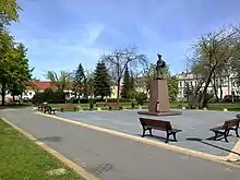 The town is located in the north-eastern outskirts of Mazovia, which has been part of Poland since the establishment of the state in the Middle Ages. In 1437, the Szczuka noble family of the Grabie coat of arms purchased the land, on which they founded the village, which was initially named Szczuki-Litwa.[1] Thanks to the efforts of Stanisław Antoni Szczuka, Szczuczyn was granted town rights around 1690 by Polish King John III Sobieski.[2] Szczuka brought the Piarists to the town and a Baroque Piarist church and monastery complex was built, which remains the greatest landmark of the town.[2] Szczuka also built a Piarist college, for which the Polish King established a scholarship fund.[2] Szczuczyn was a private town, administratively located in the Masovian Voivodeship in the Greater Poland Province of the Polish Crown. Stanisław Antoni Szczuka, who died in Warsaw in 1710, was buried in the local Piarist church. In the 18th century the town passed to the powerful Potocki family.[2] Factors that largely contributed to the development of the town were the presence of the school and the location on a trade route connecting Białystok and Königsberg.[2] Among the teachers of the Piarist college were Jakub Falkowski, who then founded the oldest Polish school for deaf people in Warsaw, and Polish philosopher Bronisław Trentowski.[2]