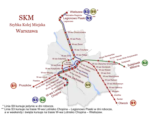 Szybka Kolej Miejska (SKM) (literally in English Fast City Rail) is a rail operator providing services in the Warsaw metropolitan area using the national rail network while constituting a part of the city's integrated public transport system organized by the Warsaw Transport Authority.