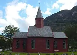 Tønjum Church (Norwegian: Tønjum kyrkje) is a parish church of the Church of Norway in Lærdal Municipality in Vestland county, Norway. It is located in the village of Tønjum. It is the church for the Tønjum parish which is part of the Sogn prosti (deanery) in the Diocese of Bjørgvin. The red, wooden church was built in a cruciform design in 1832 using plans drawn up by an unknown architect. The church seats about 175 people.[1][2]