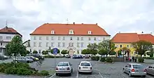 Town square with the town hall (left)
