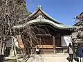 This is a hexagonal (rokkaku) building with revolving bookshelves for sutras and sculptures. In 1842, the local merchant Bungoya Eizō raised money from merchants throughout western Japan and invited a carpenter named Itō Hirazaemon to build this sanctum. The building is open on the 28th of every month[1]