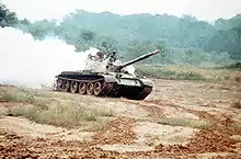 According to military author Bryan Perrett, the T-62 never enjoyed the commercial success of the T-54/T-55 series for numerous reasons. First, the T-62 was more than twice the price of the T-55, and many Warsaw Pact nations passed on the new tank because they did not feel that the improvements inherent in it warranted the cost. Secondly, in 1968, a 100 mm HVAPDS tank shell capable of piercing Western armour was developed. Use of this shell made the T-55 gun almost as effective as the T-62s, undercutting the T-62's original selling point: a bigger, more powerful gun. Third, the T-62 was, according to Perrett, almost immediately surpassed on its introduction by the new Western MBTs, the Chieftain and M60.[21] Finally, the T-62 could not keep up with the new Soviet BMP-1 – the principal infantry fighting vehicle that the T-62 was supposed to accompany. All of these factors combined to ensure that long-term investment in the T-62 was not viable and a new Soviet MBT had to be developed.[21]