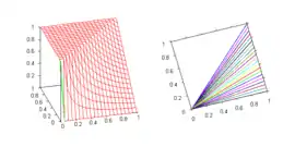 | Minimum t-norm | Standard Gödel implication | y | ![]() Standard Gödel implication. The function is discontinuous at the line y = x < 1. |