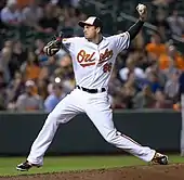 After spending the 2012 season with the Akron Aeros of the Class AA Eastern League and the Columbus Clippers of the Class AAA International League, the Baltimore Orioles selected McFarland from the Indians in the 2012 Rule 5 draft.[4] After a strong spring training,[5] he was named to the Orioles' Opening Day roster.[6] The Orioles traded fellow relief pitcher Luis Ayala in April 2013, further solidifying McFarland's hold on a roster spot and improving his chances of staying with Baltimore; a Rule 5 pick must remain with the MLB team that drafted him for the entire season or be offered back to the original team for $25,000. He earned his first career major league win on June 13 pitching an inning of relief against the Boston Red Sox. He made his first career start on June 28 against the New York Yankees.[7] In his first full major league season, McFarland made 38 appearances with all but one in relief.