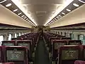 All cars feature single passenger rooms with 2+3 or 2+2 seating, as on the 700 Series Shinkansen.[3] Toilets were installed on odd numbered cars.[3] One end of car 7 features four wheelchair accessible seats, also provide for the fastening of wheelchairs, and there are two foldable wheelchairs.[5] The toilet next to the handicapped area was built to be accessible by wheelchair, with automatic sliding doors, wider space to allow a wheelchair to turn around, and handrails.[6] The train has no restaurant or bar,[3] but was equipped with vending machines, while Business Car passengers also get seat service.[6] Certain cars were equipped with on-board telephones, in anticipation of the construction of a base system.[6]