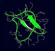 Three homologous peptides (TLTx1, 2 and 3) have been isolated from the venom of the tarantula. They consist of 35 amino acids, with a mass of <5 kDa.[4] They form a total of 3 disulfide bonds between the side chains of cysteine, of which the positions in the sequence are identical in all subtypes of the toxin. The homology with other tarantula toxins suggests that TLTx also forms and inhibitor cystine knot (ICK) motif.