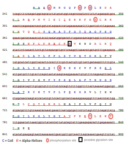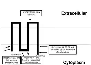- Post-translational modification: several possible phosphorylation sites were detected,[10] and a pair of possible glycation sites were predicted[18]