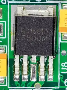 TO-252, also known as DPAK[1] or Decawatt Package, is a semiconductor package developed by Motorola[2] for surface mounting on circuit boards.[3] It represents a surface-mount[4] variant of TO-251 package, and smaller variant of the D2PAK package. It is often used for high-power MOSFETs and voltage regulators.