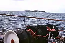 A main mast was fitted in 1952, radar in 1958 and in 1959, inflatable life rafts replaced two of her lifeboats.[3] She was further modernised in the winter refits of 1960 and 1961.