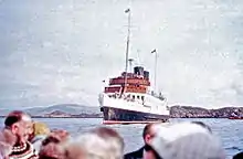 King George V was initially mainly used on the Inveraray service but also visited Campbeltown.[2] She became a much loved ship. After 1935, she was based in Oban cruising round Mull, to Iona, Staffa and Fort William.