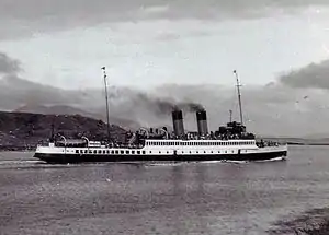 In World War II, she was requisitioned as a troop carrier, initially based at Southampton. In 1940, she evacuated troops from Rotterdam, Ostend, Calais, Boulogne and famously, Dunkirk, landing 4300 men at Dover.[2] Returning to the Clyde in 1941 for tendering duties, she carried Prime Minister, Winston Churchill to his battleship en route to the Atlantic Conference.[4]