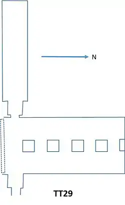 The Theban Tomb TT29 is located in Sheikh Abd el-Qurna, part of the Theban Necropolis, on the west bank of the Nile, opposite to Luxor. It is the burial place of the ancient Egyptian noble Amenemopet called Pairy who was Vizier and Governor of Thebes.[1]