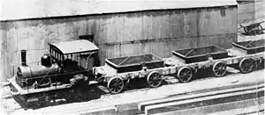 Altogether, seven Brunel gauge locomotives are known to have been employed on the Table Bay Harbour project between 1862 and 1904. The fourth of these construction locomotives was a 7 ft 1⁄4 in (2,140 mm) Brunel gauge 0-4-0WT well-tank engine which entered excavation and breakwater construction service in 1879.[1][2]