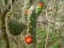 Tacinga palmadora is a species of plant in the family Cactaceae. It is endemic to Brazil. Its natural habitats are subtropical or tropical dry forests and subtropical or tropical dry shrubland. It is threatened by habitat loss.