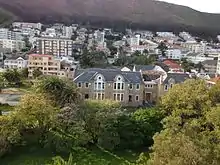 Tafelberg School was established on 23 July 1983.[8][9] It was originally a school for white students,[upper-alpha 2] and was based in Sea Point from the 1980s until 2010.[5] The school was located at two separate sites in Sea Point and catered for children with special learning needs referred by schools throughout the Cape Peninsula.[8] The junior school was located at 3 Kings Road, on the corner of Tramway Road.[5][11][upper-alpha 3] The senior school was located in a building at 355 Main Road which had previously housed Ellerslie Girls' High School from 1899.[upper-alpha 4][upper-alpha 5][upper-alpha 6] In 1989 Ellerslie Girls' High School vacated the building following a merger with Sea Point High School, formerly Sea Point Boys' High School, which had become co-educational and Tafelberg School subsequently occupied the vacant building.[16][upper-alpha 7]