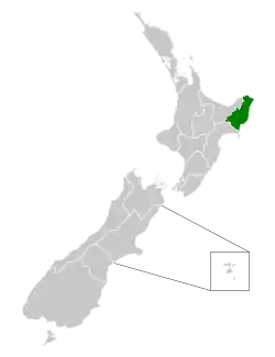 ![]() Location of the Tairāwhiti DHB (green) in New Zealand | |