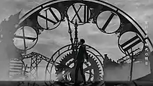 After that, Tokito turns around to see the giant clock pointing to 11:58 in the background, which is the time that the Great Kantō earthquake occurred. Suddenly, he runs across the showy background and throws a letter into the door being close. Later, he walks crestfallenly, showing the black lyrics on white background. The door opened to show the letter is sent to Chiyoko. She read it and run to throw her reply letter sent to him. He reads the letter while standing on the hour hand of a clock and meet Chiyoko, which stands on the minute hand. Finally, the pair runs towards each other and embraces, but as quickly, the music video ended up with Chiyoko fading from an explosion of light.[24]