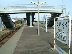 Taiyō Station (大洋駅, Taiyō-eki) is a passenger railway station in the town of Hokota, Ibaraki Prefecture, Japan operated by the third sector Kashima Rinkai Railway.