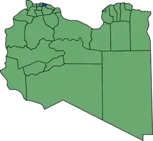 Tajura wa Arbaʽ (Arabic: تاجوراء والنواحي الأربع, romanized: Tarjūrāʾ wa an-Nawājī al-ʾArbaʿ) was one of the districts of Libya from 2001[1] to 2007. It consisted of eleven Basic People's Congresses,[1] similar to townships, and its capital was Tajura. In the 2007 administrative reorganization the territory formerly in Tajura Wa Al Nawahi Al Arbaʽ was transferred to the Tripoli District (Tarabulus District).[2]