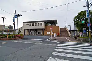 Takada Station (高田駅, Takada-eki) is a train station of West Japan Railway Company (JR West) in Yamatotakada, Nara, Japan. Although the station is on the Sakurai Line as rail infrastructure, it has been served by the Man-yō Mahoroba Line since 2010 in terms of passenger train services. The station is also served by the Wakayama Line. There is a transfer to Yamato-Takada Station on the Osaka Line of Kintetsu Railway.
