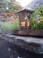 Legend has it that the Akinomiya Hot Springs, the oldest in Akita Prefecture, were found 1,200 years ago.[1] Local legend also has it that Takanoyu, or Falcon's Hot Spring, got its name when a falcon led a hunter to the spring, giving the onsen its eponymous name. The onsens in Akinomiya were officially recognized by the Akita Clan in the Edo period (1603–1868).[2]