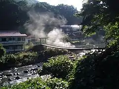![]() Takanoyu Onsen and steam rising from the hot spring | |