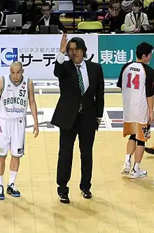 Takatoshi Ishibashi (石橋貴俊, Ishibashi Takatoshi) is the Head coach of the Tokyo Hachioji Bee Trains in the Japanese B.League.[1] He played college basketball for Hokkai Gakuen University. He was selected by the Toyama Grouses with the 14th overall pick in the 2006 bj League draft.