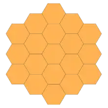 Take It Easy is an abstract strategy board game created by Peter Burley. It can be characterized as a strategic bingo-like game, and has been published by Ravensburger and subsequently by several other publishers since 1983. Each player gets a board with places for 19 hexagon tiles to place in a hexagon shape. Additionally, players get identical sets of tiles which have different types of colored/numbered lines crossing in three directions. One player draws a tile randomly and then tells the others which was drawn. Each player then puts their matching tile on their board in any available spot. This is repeated until the board is filled. The object is to complete colored/numbered lines across the board, for which points are scored according to the numbers on those lines. The maximum score possible is 307.