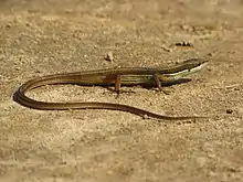 Takydromus khasiensis (common names: Java grass lizard, Khasi Hills long-tailed lizard ) is a species of lizard. It is found in Northeast India (Assam, Meghalaya), adjacent Myanmar (=Burma), and northern part of Bangladesh. The type locality is the Khasi Hills.[2]