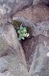 Talcott Mountain hosts a combination of microclimates unusual in New England. Dry, hot upper ridges support oak savannas, often dominated by chestnut oak and a variety of understory grasses and ferns. Eastern red cedar, a dry-loving species, clings to the barren edges of cliffs. Cooler east-facing backslopes tend to support extensive stands of eastern hemlock interspersed with the oak-hickory forest species more common in the surrounding lowlands. Narrow ravines crowded with hemlock block sunlight, creating damp, cooler growing conditions with associated cooler climate plant species. Talus slopes are especially rich in nutrients and support a number of calcium-loving plants uncommon in eastern Connecticut. Because the trap rock ridges generate such varied terrain, they are the home of several plant and animal species that are state-listed or globally rare.[1][5]