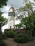 The centerpiece of Talcott Mountain State Park is Heublein Tower, accessible to the general public by hiking trail only (1.25 miles (2.01 km), 30 to 40 minute hike). The tower, 165 ft (50 m) tall and 1,040 ft (317 m) above sea level, built for Gilbert F. Hueblein in 1914 as a summer retreat and home, was designed to withstand winds of 100 mph (160 km/h). Ownership of the property passed to the Hartford Times newspaper during World War II, and, in the 1950s, was used primarily as a radio beacon. Put up for sale in the 1960s and slated for residential development, the tower became part of the Talcott Mountain State Park in 1965 through the efforts of conservation non-profit groups, the state of Connecticut and the United States government. The tower has been renovated as a museum with period artifacts and furnishings. Visitors may climb to the top of the tower for a 360° view encompassing four states. The tower is open for tours Memorial Day to Labor Day, Thursday through Sunday, 10 am to 5 pm; Labor Day through the end of October, 10 am to 5 pm. [14][15]