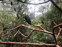 A cave inside the waterfall housed a free-roaming spotted wood owl and buffy fish owl.