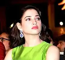 Tamannaah is an Indian actress known for her work in Telugu and Tamil films. Her first role came in 2005 at the age of 15 with Chand Sa Roshan Chehra in Hindi.[1] The same year she made her Telugu film debut with Sri, and the following year she made her Tamil debut with Kedi. None of these films were profitable ventures.[2] In 2007, Tamannaah achieved her first success in Telugu and Tamil cinema with Happy Days and Kalloori respectively.[3] Her portrayal of a college student in both films received critical acclaim,[4] with the latter earning her a nomination in the Best Actress – Tamil category at the 55th Filmfare Awards South ceremony.[5] Tamannaah's performances in Konchem Ishtam Konchem Kashtam and Kanden Kadhalai (both released in 2009) earned her nominations in the Best Actress – Telugu and Best Actress – Tamil categories at the 57th Filmfare Awards South ceremony.[6][7] A series of commercially successful films helped her establish a career in Tamil cinema.[8][9]