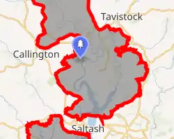 The AONB straddles the administrative border between Cornwall and Devon and covers around 75 square miles of the lower River Tamar below Launceston. There are four ancient towns: Launceston in the North with a steam railway and Norman castle; Tavistock to the East and adjacent to Dartmoor; Callington in the West with a mural trail, and Saltash with the Royal Albert Bridge.[3]