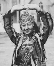Tamara Khanum (1906–1991) was an Armenian dancer, known for being one of the first women in Uzbekistan to dance on stage without a paranja.[1][2] She was a colleague of ill-fated Uzbek dancer Nurkhon Yuldasheva, who was murdered in an honor killing for taking off her veil onstage.[3]
