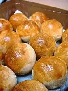 Tambun biscuits (Chinese: 淡汶餅; Tâi-lô: Tām-būn-piánn) are a miniaturised form of Tau Sar Pneah (Chinese: 豆沙餅; Tâi-lô: Tāu-sá-piánn), both famous Penang delicacies made from wheat flour, sugar, green bean paste, fried onions, lard and salt. The pastry was believed to be invented in Bukit Tambun, Penang.[1] Its popularity as a delicacy has made this biscuit one of the must-buy souvenirs from Penang.