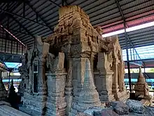 Stone images featuring flora and mythical creature motifs in relief, similar in craftsmanship to those found in Bagan.