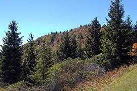 Tanasee Bald, also called Tennessee Bald, is a mountain near the Blue Ridge Parkway in western North Carolina, on the Haywood/Transylvania border.[2] It is 5561 feet high. It is in the Great Balsam Mountains within the Blue Ridge Mountains, which is part of the Appalachian Mountains