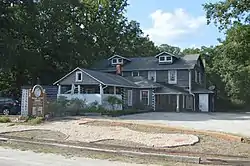 Tanglewood, also known as Tanglewood Ordinary and Tanglewood Tavern, is a historic hotel and tavern located near Maidens, Goochland County, Virginia. The earliest section was built as a gas station in 1929. It is the front one-story projection. A large 2 1/2-story Rustic style log section was added in 1935. The rear addition was built as a restaurant / dance hall on the first floor and living quarters on the upper floors. A two-story "owners" house was built into a hillside behind Tanglewood in about 1950.[3]