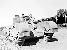 The regiment subsequently fought a number of actions using a variety of armoured personnel carriers, light tanks, and 2-pounder anti-tank guns before returning to Australia in March 1942.[33] The 9th Division Cavalry Regiment later also served in Syria and was the first Australian armoured unit to be equipped with modern vehicles, receiving British Crusader Mark II medium tanks and M3 Stuart light tanks.[34][35] A number of captured French Renault R35 tanks were also used.[36] The regiment returned to Australia in early 1943.[37] Between mid-1942 and early 1944 the Divisional Cavalry Regiments were converted to commando units and subsequently fought in the Pacific against the Japanese as dismounted infantry.[38]