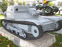 In May 1919, the French acceded to the sale of a single FT light tank to the Spanish Army, delivered the next month.[4] This particular FT was armed with an 8-millimeter (0.31 in) Hotchkiss machine gun, and was later re-armed with a Spanish 7-millimeter (0.28 in) machine gun. Upon inspection by the Spanish government, it was decided to procure another ten—including eight armed with machine guns and two armed with cannons. The French government declared that there were no vehicles available for sale, and later added that under no circumstances would they allow Spain to rearm these vehicles with the Spanish 7 millimeters (0.28 in) machine gun, and consequently denied the sale. As a result, Spain began to approach other governments, including Great Britain and the United States, but with no success.[5]