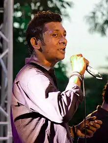 Tanzir Tuhin (Bengali: তানজির তুহিন) is a Bangladeshi musician, singer-songwriter, actor, painter, and architect,[1] best known as a longtime member of the independent music group Shironamhin.[2] He joined the group as lead vocalist in 2000.[1][3] Shironamhin subsequently achieved national success with their albums Bondho Janala, Shironamhin Rabindranath and Shironamhin Shironamhin. By the late 2000s, they had become one of the most well-known group in the rock music history of Bangladesh. Amid personal conflict,[4] Tuhin left Shironamhin in 2017[1] and form a new band named Avash at the end of that year.[5]